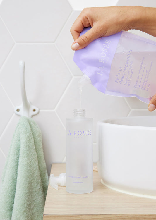 Économisez €11,80Duo Recharge shampoing purifiant et son flacon en verre rechargeable